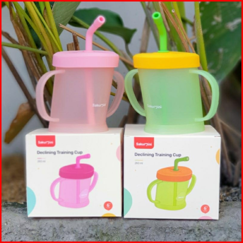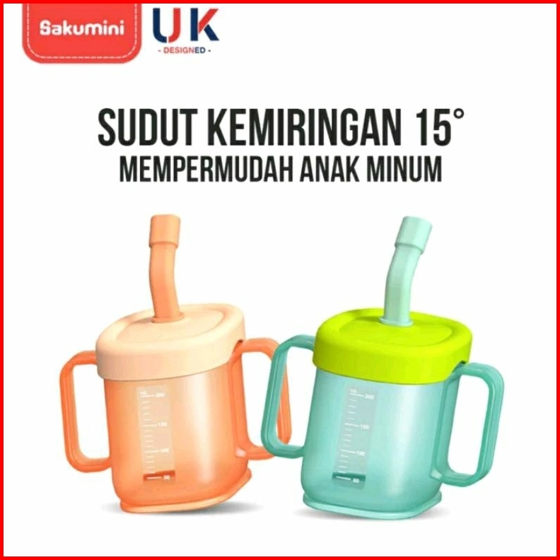 Sakumini Curve Straw Cup Training 260ml 200ml Gelas Minum Sedotan Bayi Anak Multifungsi Cangkir Belajar Bayi