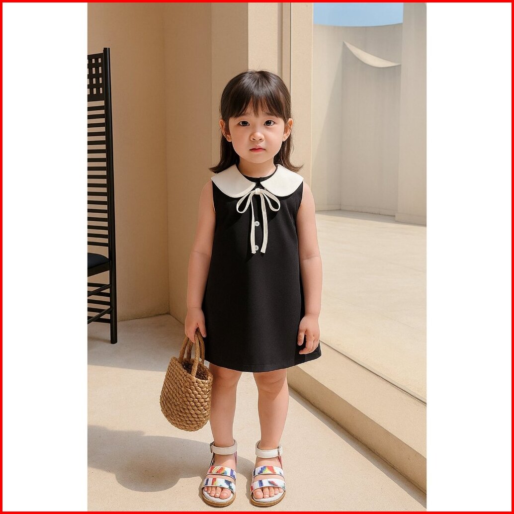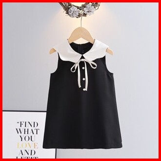 Beechic.kids Dress Black Simpel Anak Perempuan Pita Korea Dress Hitam Tanpa Lengan Import - Drs001