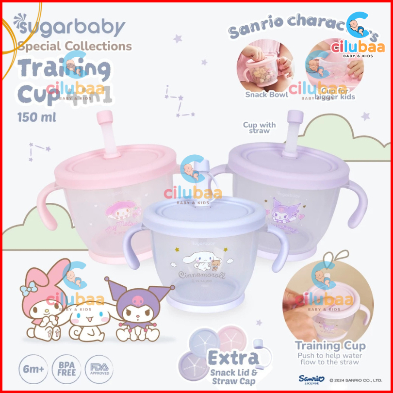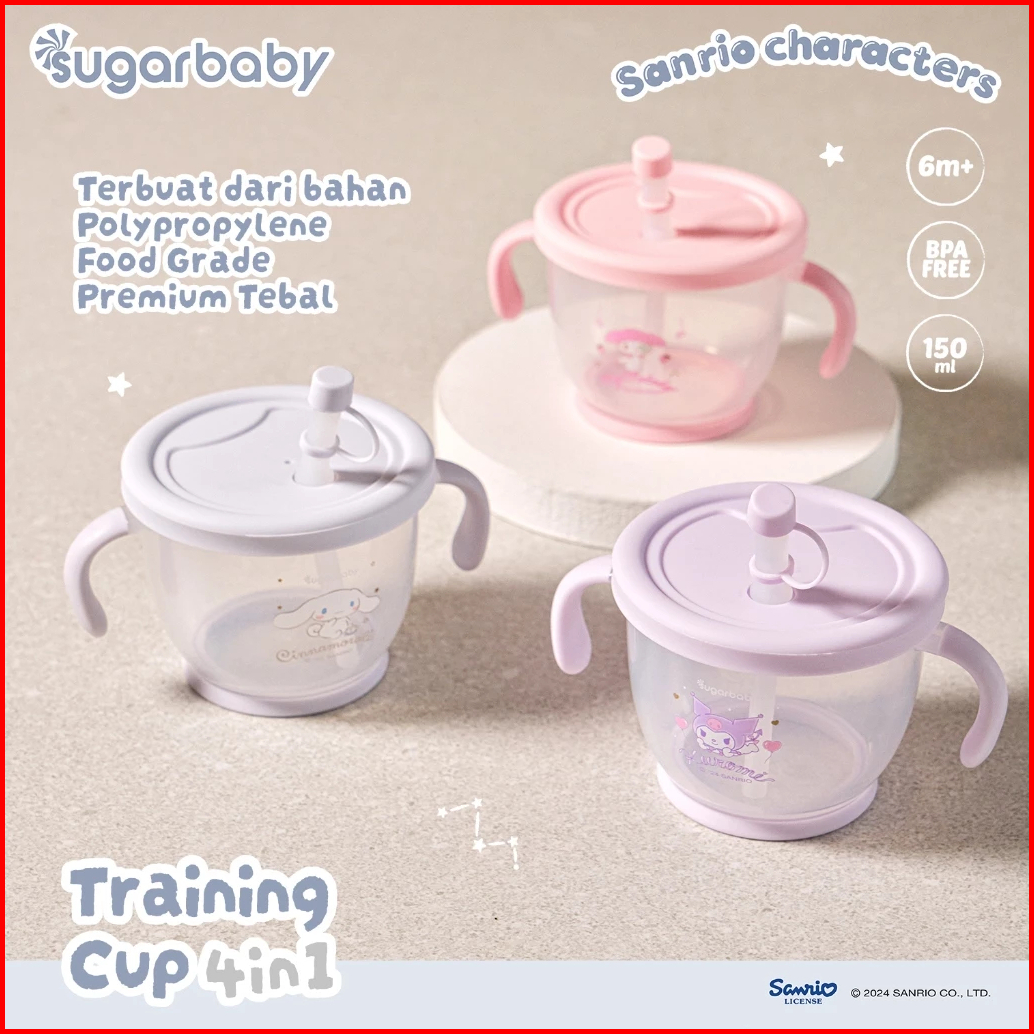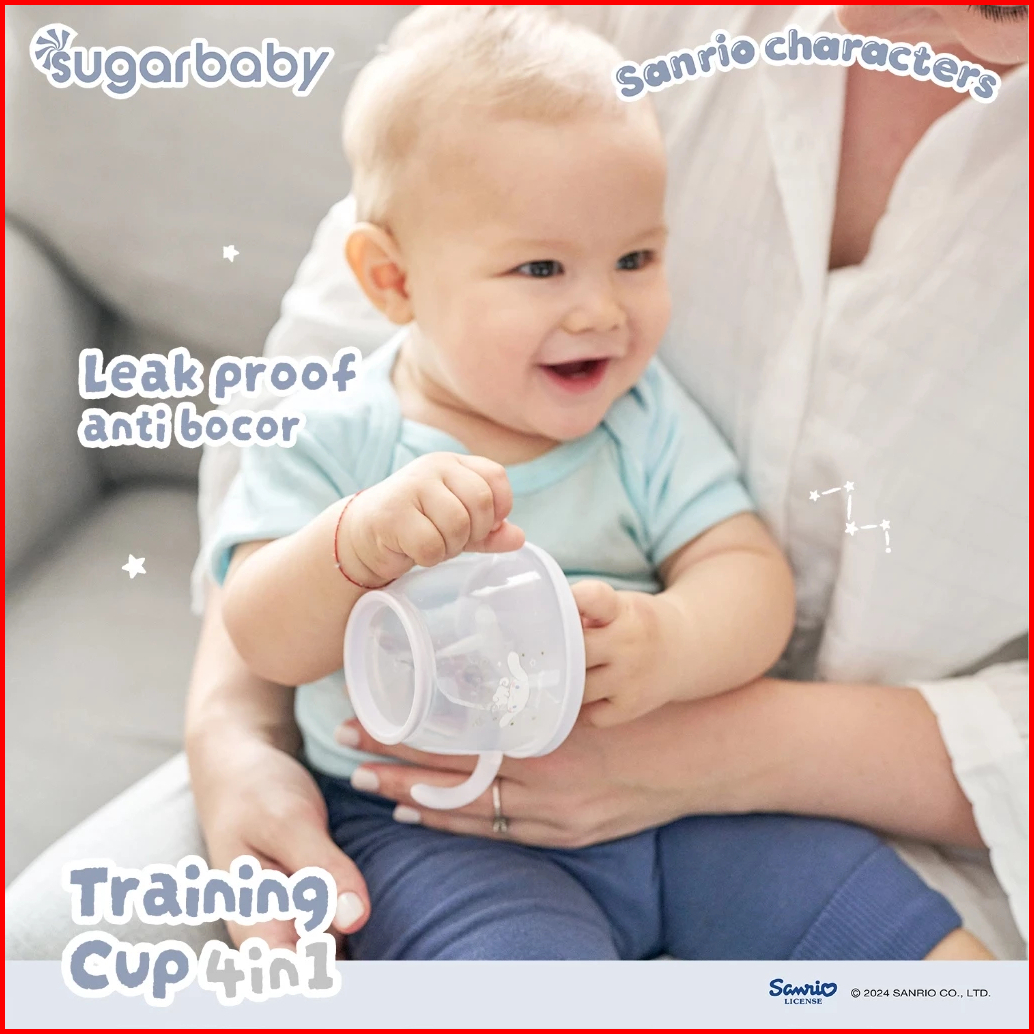 Sugar Baby Training Cup 4in1 Sanrio Collection Gelas Anak Bpa Free Cangkir Bayi Gelas Mpasi Anti Bocor Dan Tumpah Straw