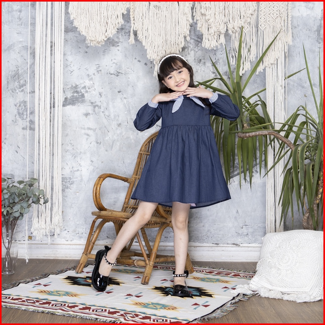 Milkan.id Oliv Jeans Dress Kids - Dress Anak Perempuan Bahan Jeans Ways Usia 1 - 5 Tahun