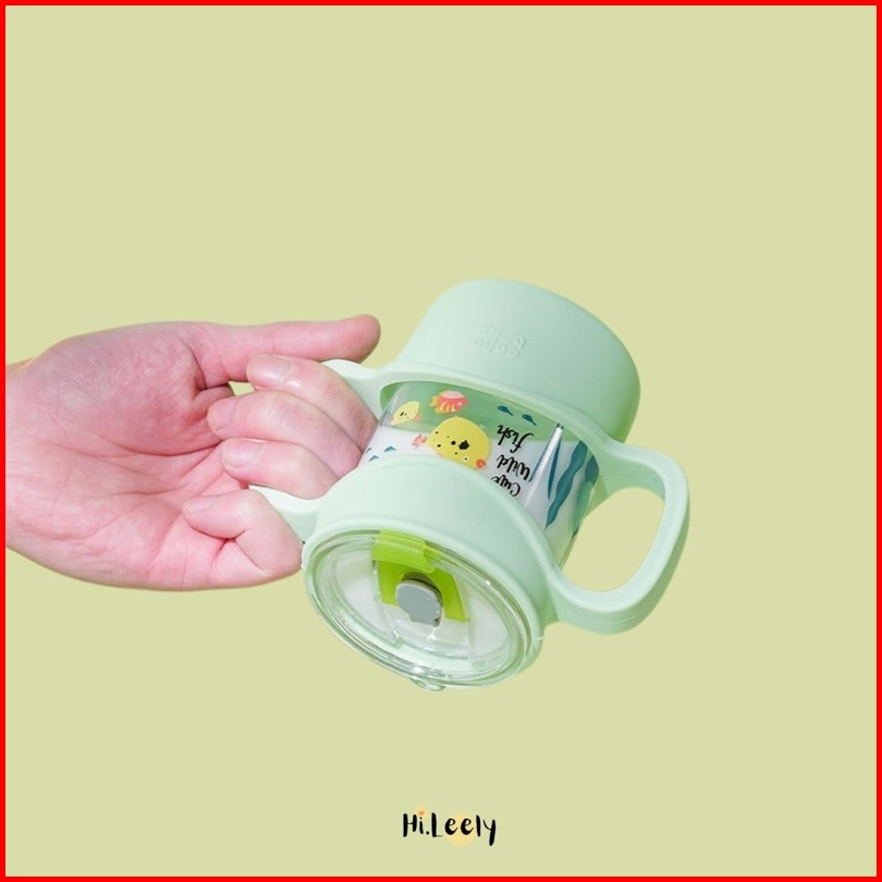 Training Cup Milk Glass Gelas Kaca Silicone Anti Tumpah Anti Bocor Sedotan 260ml