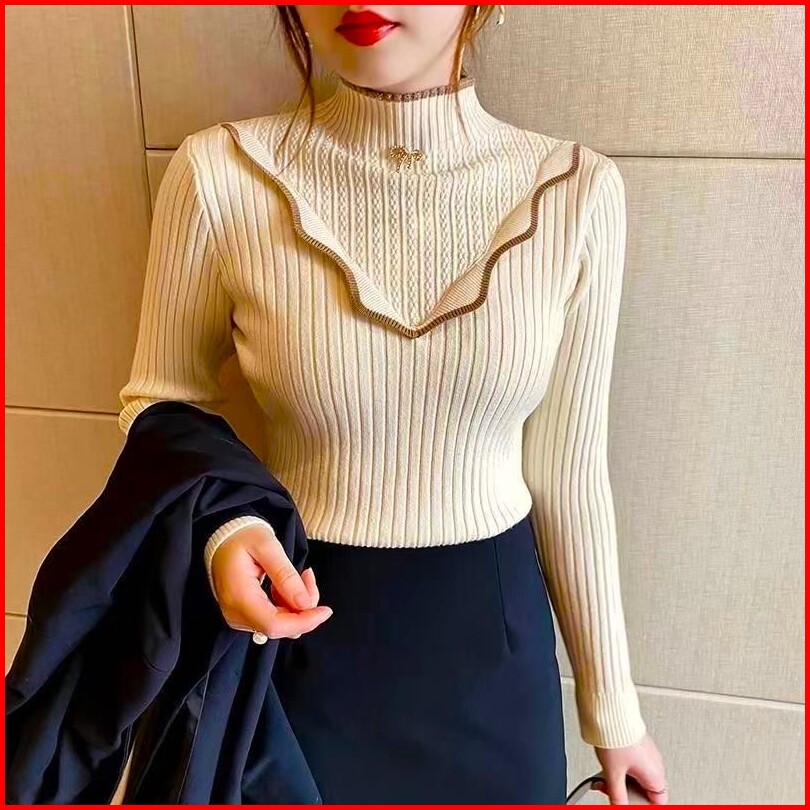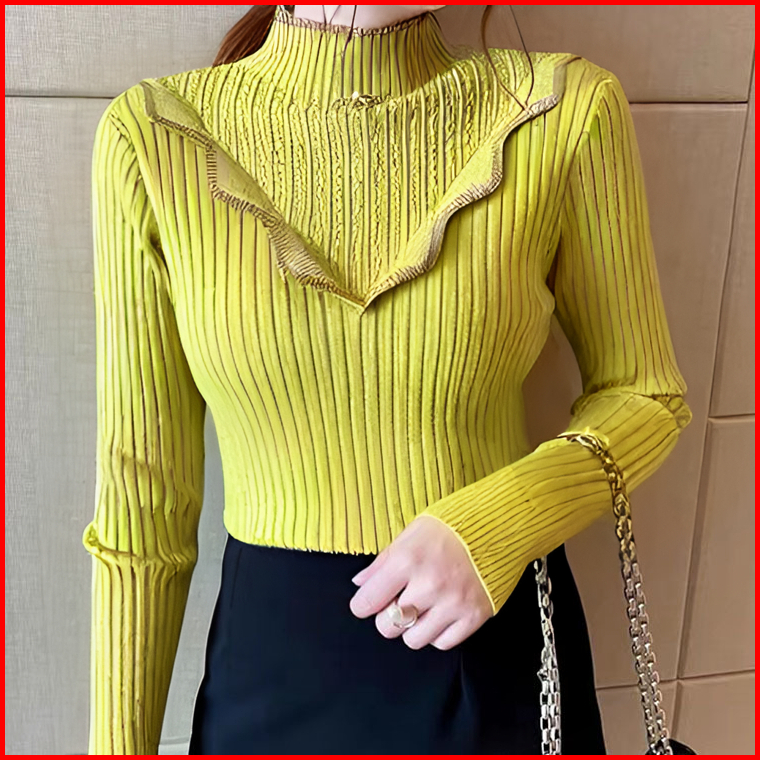 Hallyu Atasan Wanita Ruffle Variasi Pin Pita Lengan Panjang Premium Baju Wanita Ruffle Variasi Bros Pita Korean Style At