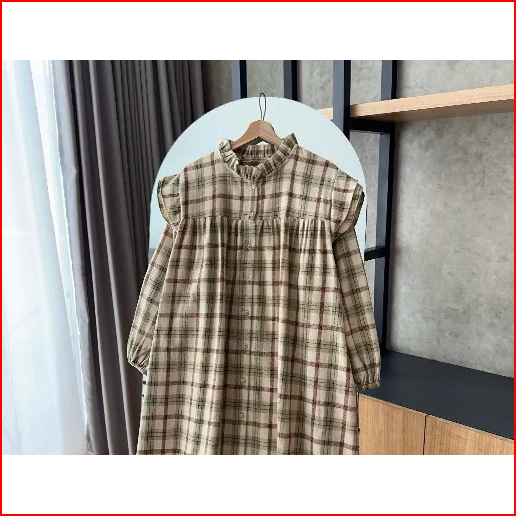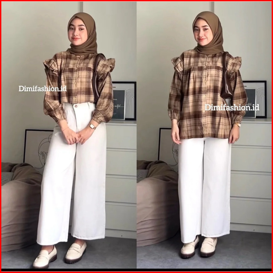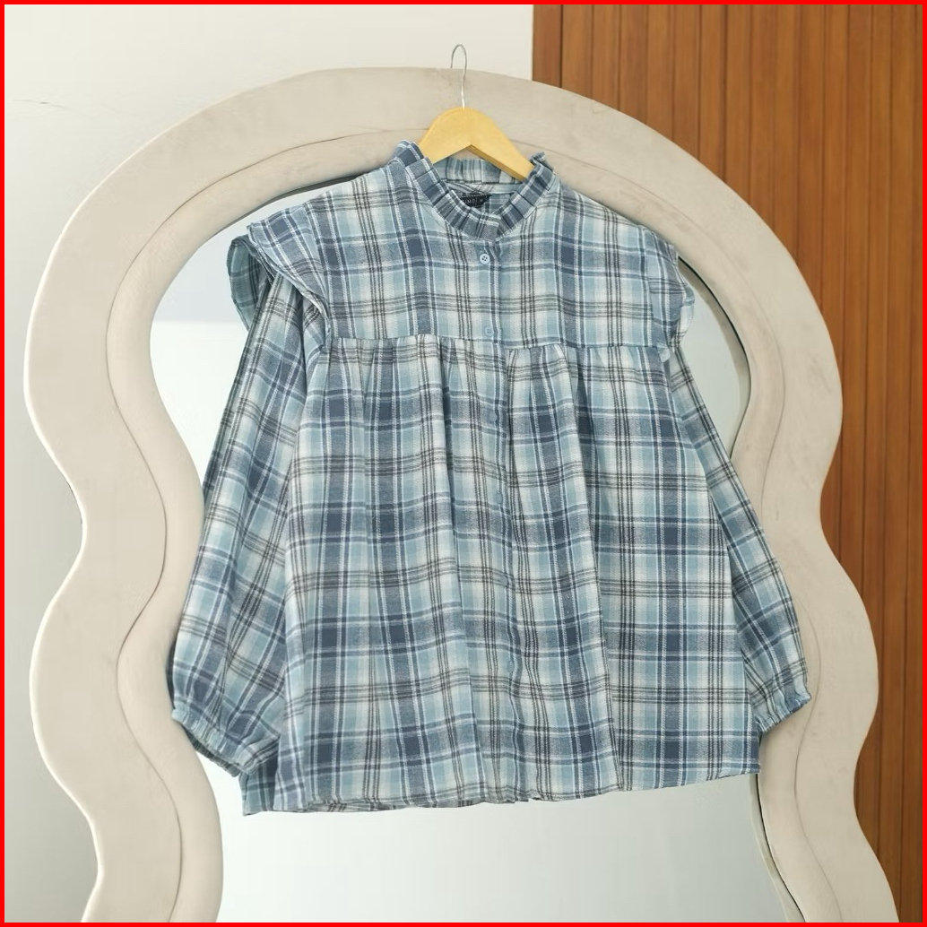 Atasan Flanel Viral Kemaja Ruffle Flanel Wanita Kekinian