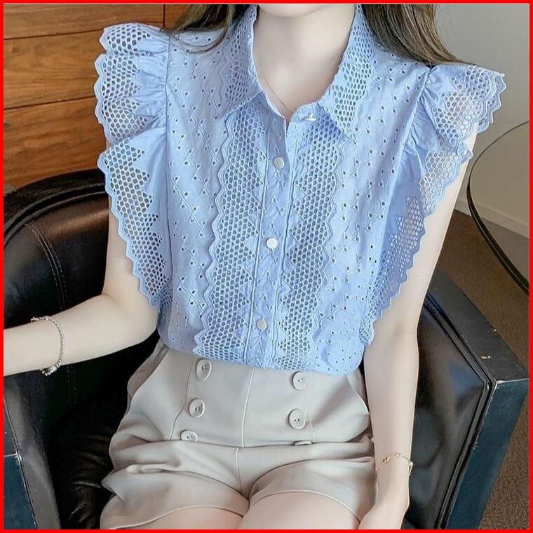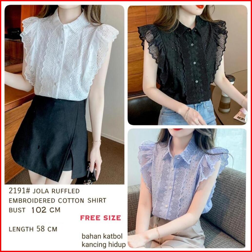 Tm 2191 Blouse Jola Ruffle Embroidered Cotton Shirt Katbol Import