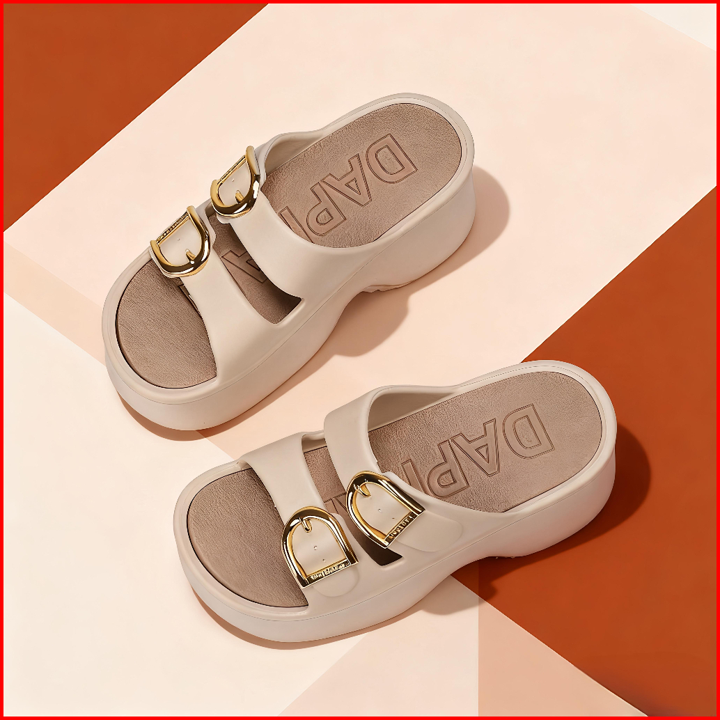 Sandal Wedges Wanita Korea Style - Karet Gesper Elegan Kekinian Tinggi Platform Size 36-41