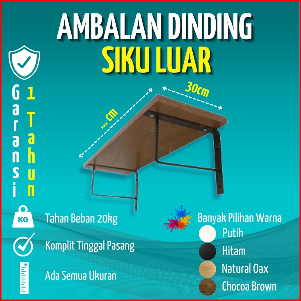 Rak Dinding Minimalis Ambalan Siku Besi Hiasan Papan Hambalan Kayu Laci Melayang Dinding Ukuran 50cm 60cm 70cm 80cm 100c