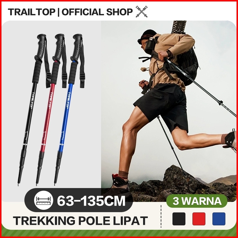 Trailtop Tongkat Hiking Lipat Adjustable 65-135cm Tracking Pole Anti Slip Kuat Tongkat Gunung