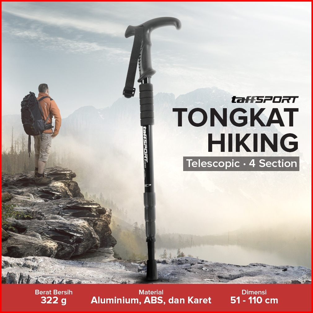 Tongkat Hiking Gunung Trekking Telescopic 4 Section - Black