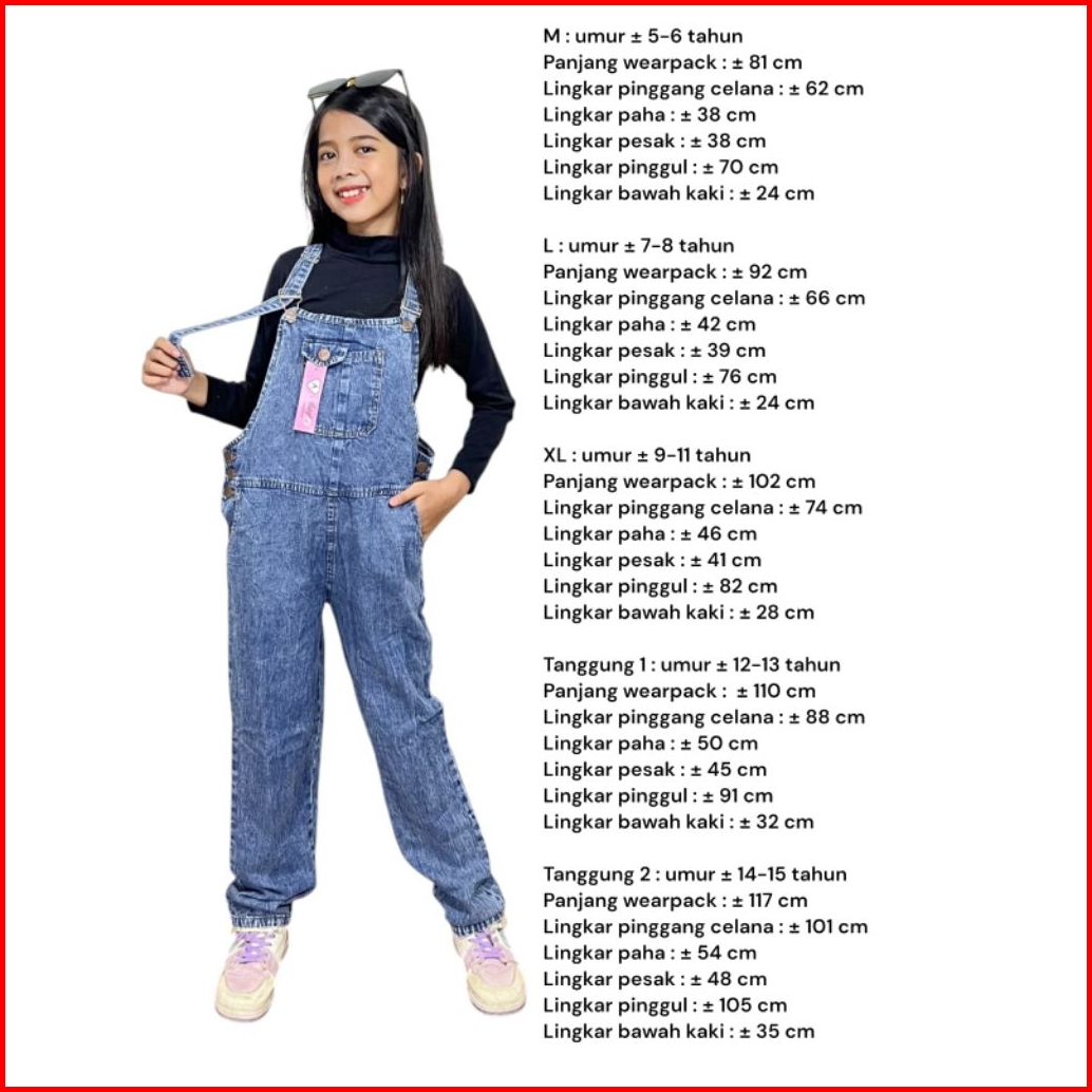 Baju Kodok Anak Over All Celana Jumpsuit Anak - Bahan Original Jeans Wash Premium 6 5 Ons - Size 6 -7. 8-10. 11-13. Tahu
