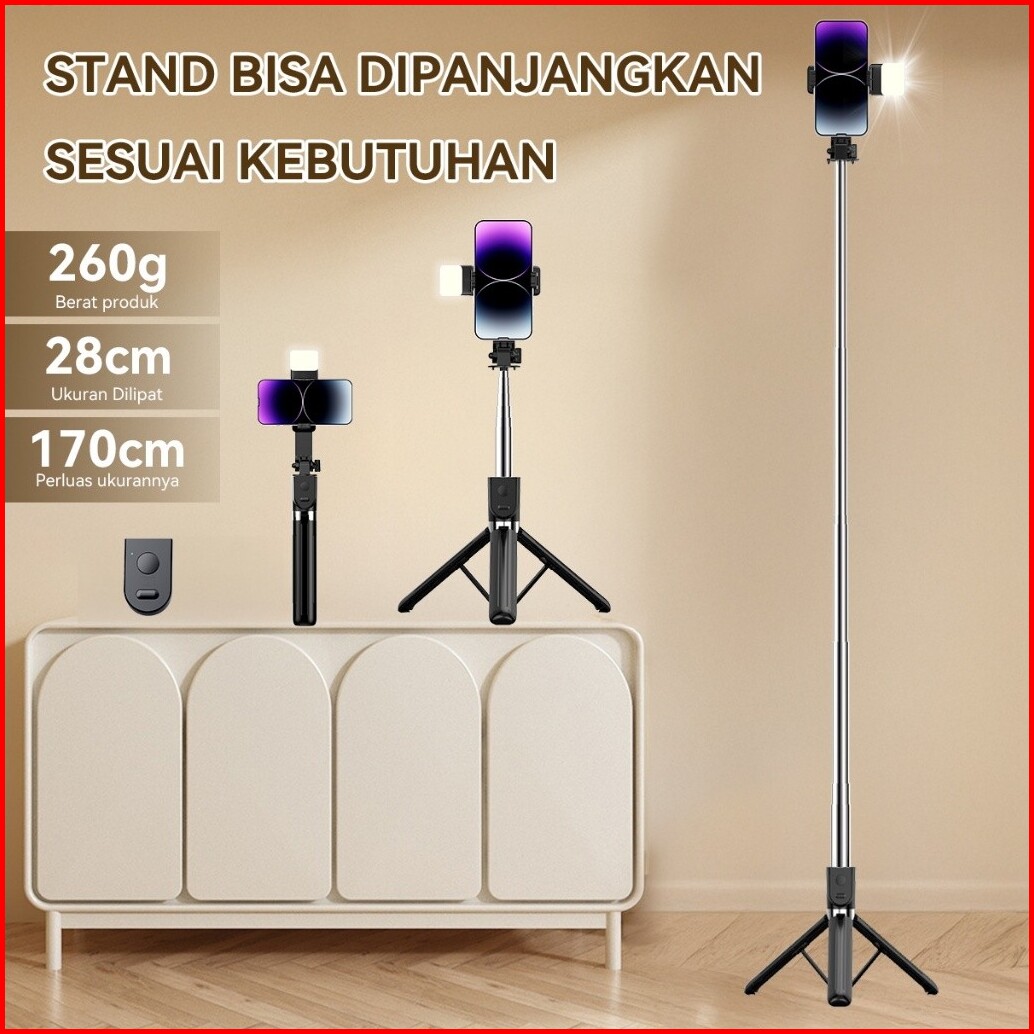 Tongsis Tripod 1.7m Led Tongsis Bluetooth 360 Selfie Stick Lampu Remote Vlog Stand Phone Ks