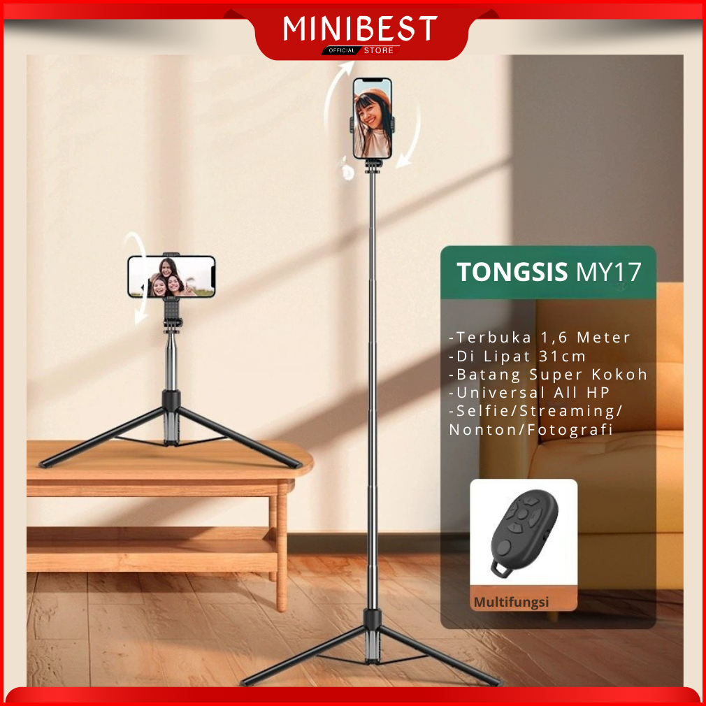 Terlaris Minibest My17 Tongsis Tripod 1 7 Meters Bluetooth Selfie Stick Remote Tripod 360 Hp Super Long