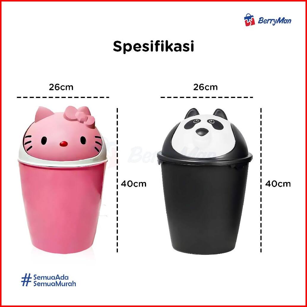 Tempat Sampah Karakter 10 Liter Tong Sampah Plastik Jumbo Hello Kitty Panda Lucu