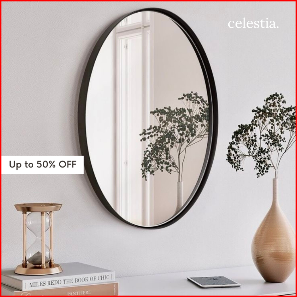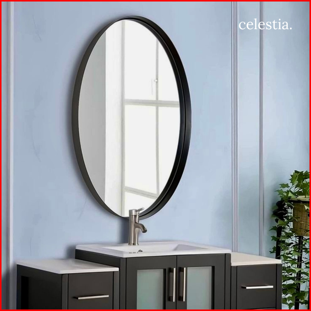 Cermin Estetik Motif Oval Dinding Frame Hitam Putih Garansi 100 Free Packing