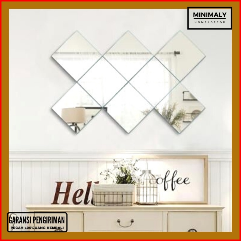 Kaca Cermin Tempel Cermin Asli Ukuran 12x12cm Hiasan Dinding Cermin Tempel Hexagonal Dekorasi