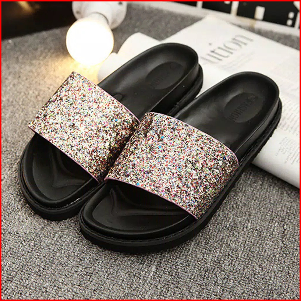 hitam, sandal gliter
