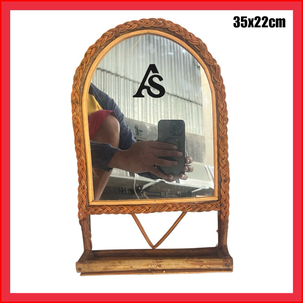 Cermin Kaca Hias Dinding Rotan Cermin Bingkai Rotan Ukuran 35x22