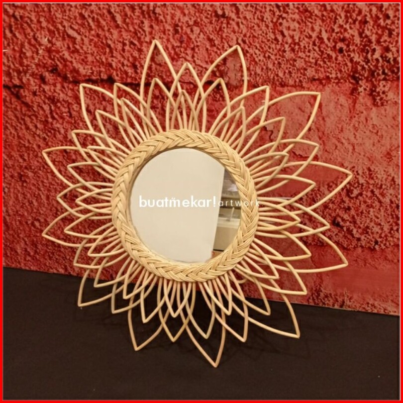 Cermin Dinding Rotan Besar 80cm Retro Vintage