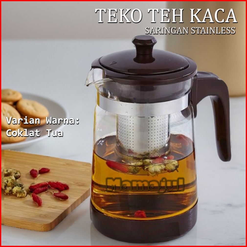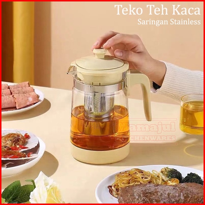 Teko Teh Kopi Tea Pot Kaca Saringan Stainless Elegan 900 Ml
