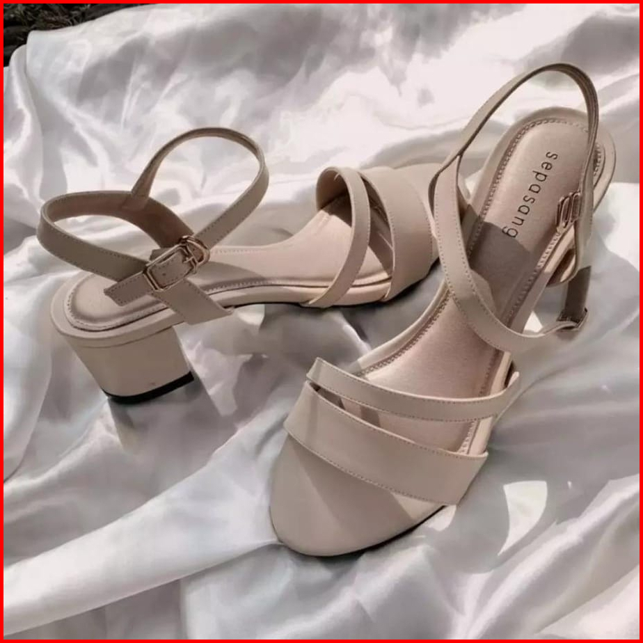 New Clarissa Heels 5cm Hak Tahu Silang Gesper Tali Belakang D 09
