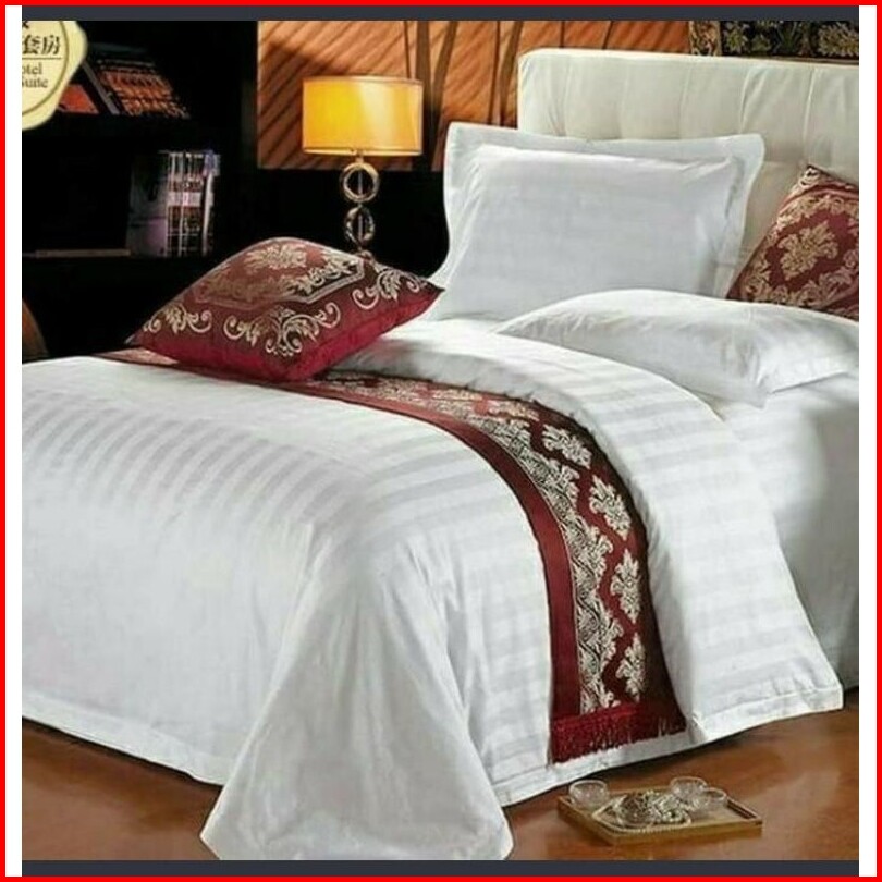 Sprei Set Bahan Katun Premium Putih Salur Hotel Ukuran 120x200