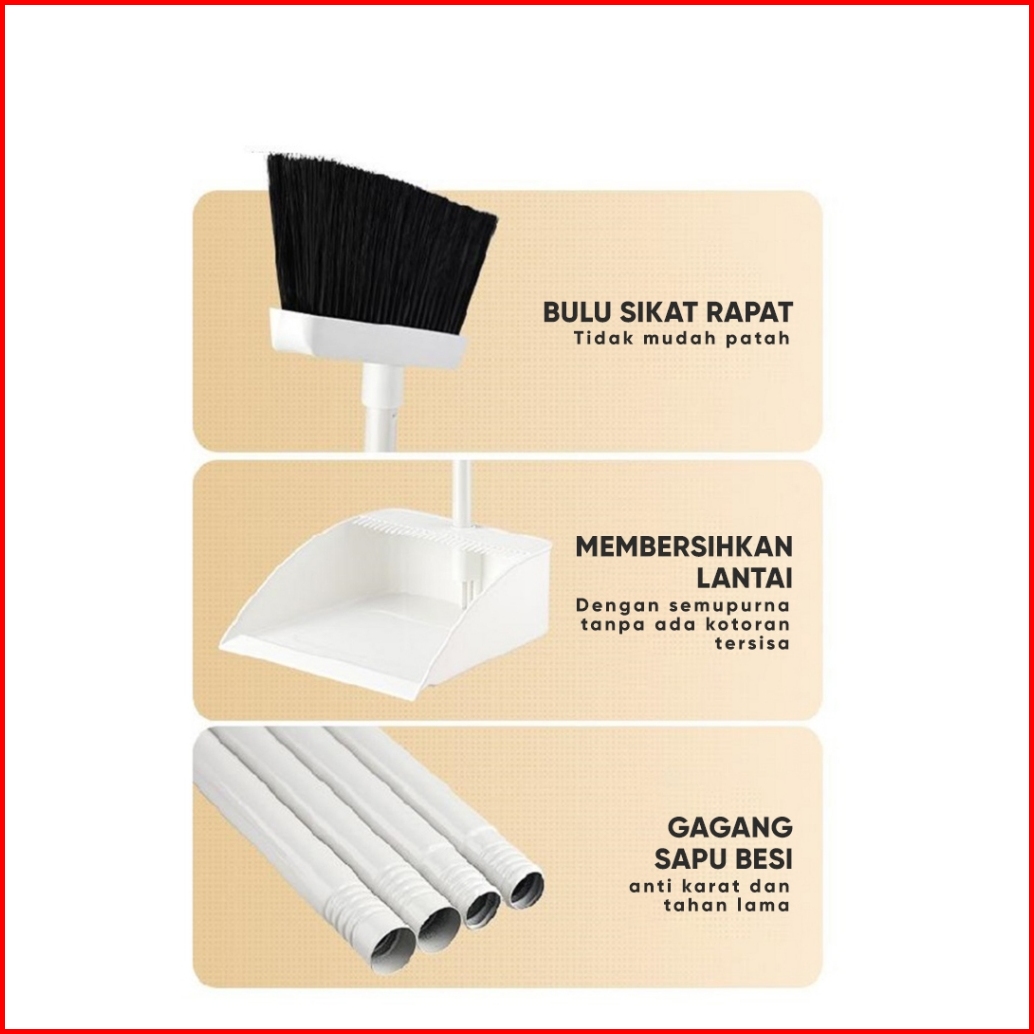 Living Mall Sapu Pengki Set D14 Broom Set Dustpan Kombinasi Sapu Pengki Alat Pembersih Lantai 2in1