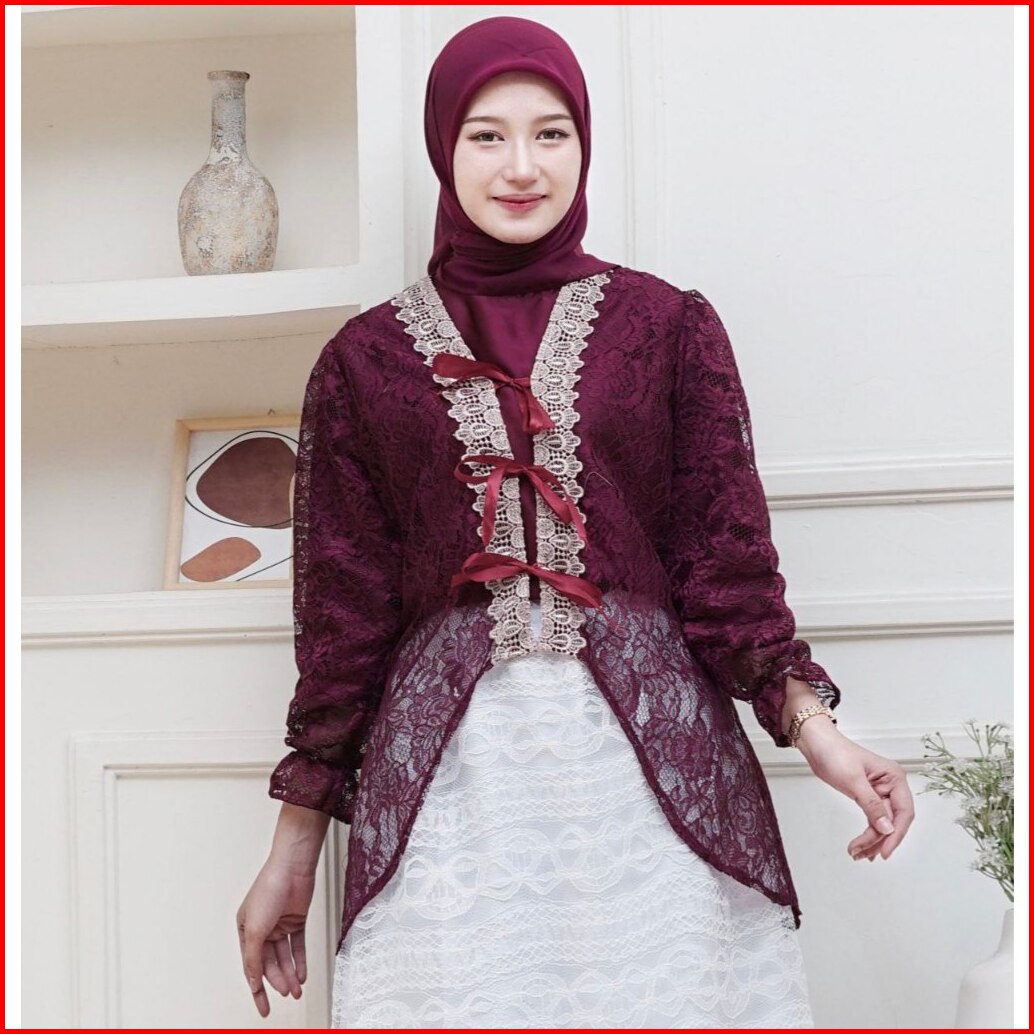 Set Outer Wiza Cardigan Brukat Lengan Panjang Inner Manset Lengan Panjang Outer Kondangan