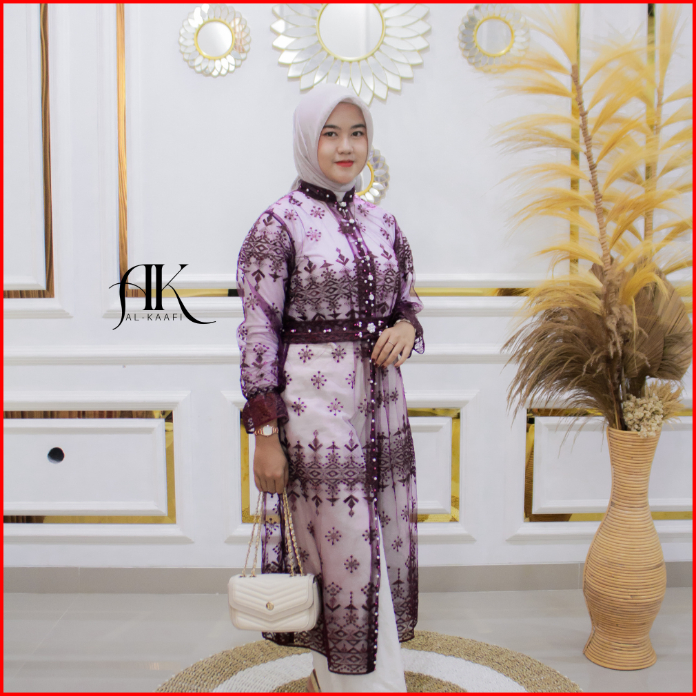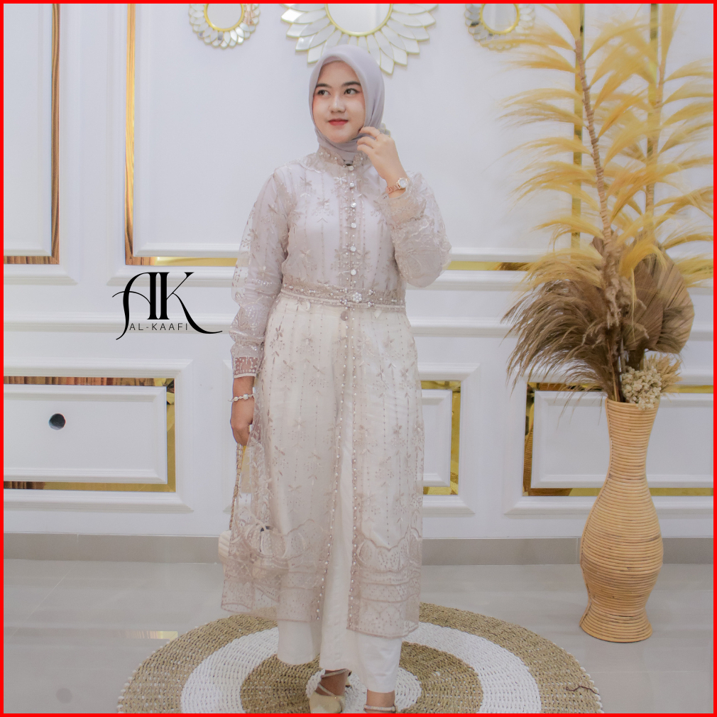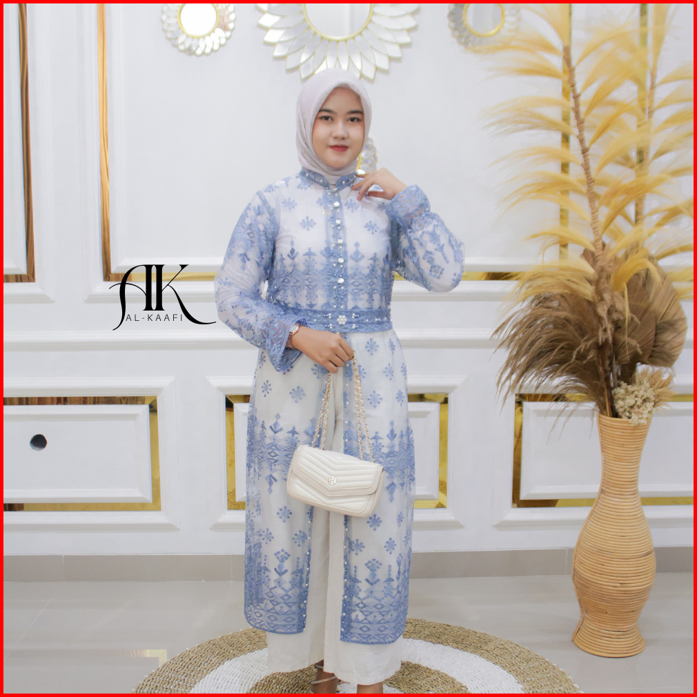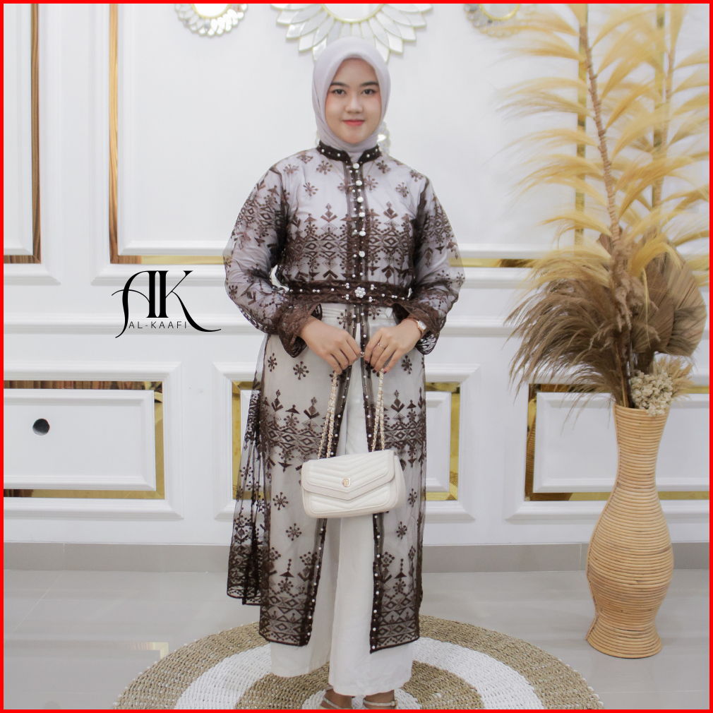 Azzura Outer Tunik Brukat Cardigan Brokat Wanita Mutiara Payet Diamond Tile Bordir Wisuda Kondangan