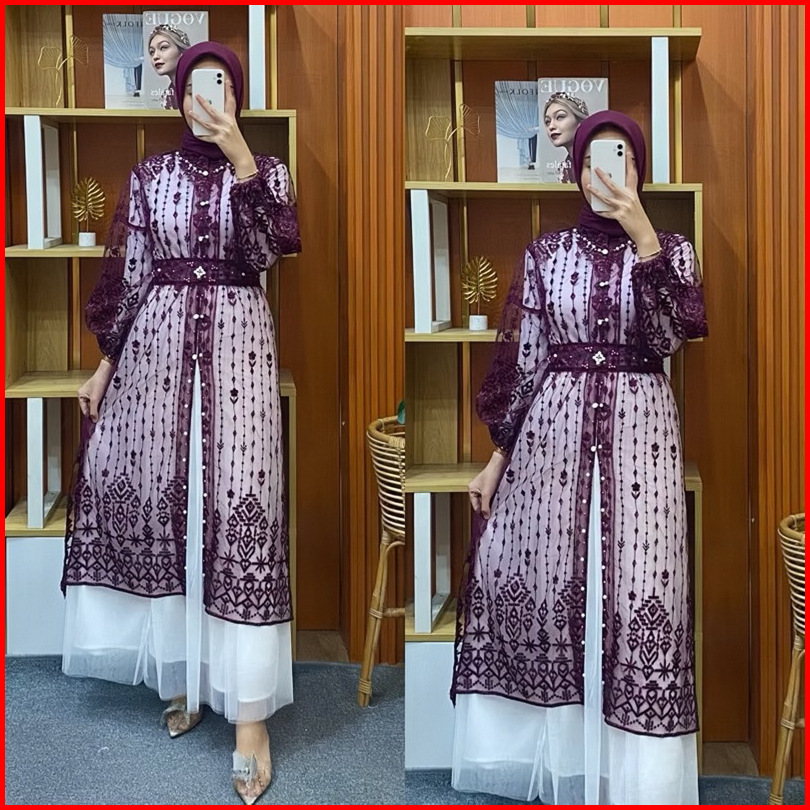 Klambi - Nadirra Outer Tunik Wanita Cardigan Brokat Kondangan Wisuda Mewah Kekinian Lengan Panjang