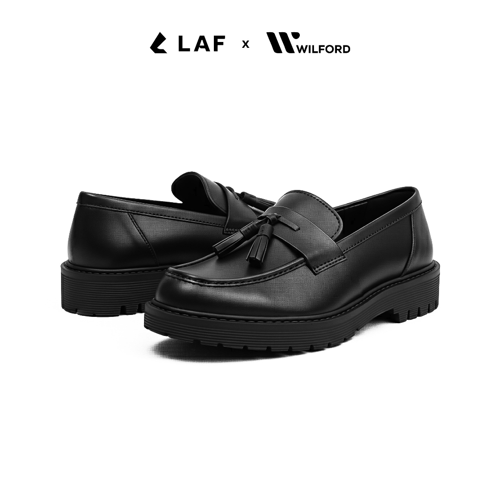 Laf Project X Wilford - Sepatu Pria Loafers Slip On Kulit Asli Hitam Kerja Formal Kantor - Ravel