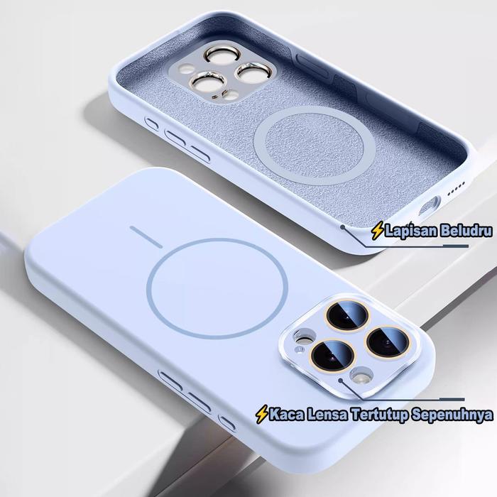 [Star] [With Lapisan Beludru] Lens Protection Softcase Blue Casing Premium Magnetic Silicone Soft Case with Magsafe for