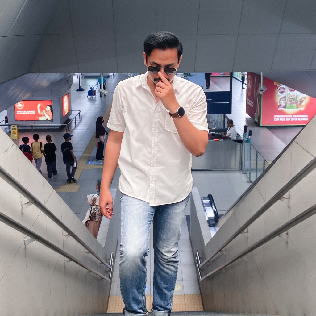 Mainworks Kemeja Pria Basic Polos Pendek Putih Off White Katun Oxford