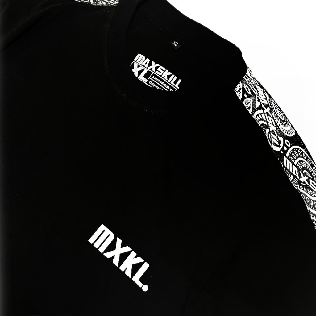 Maxskill T-Shirt Hitam Kaos Distro Woven Mxkl Tshirt Cewek Combed Cowok Nyaman Panjang Pria Unisex