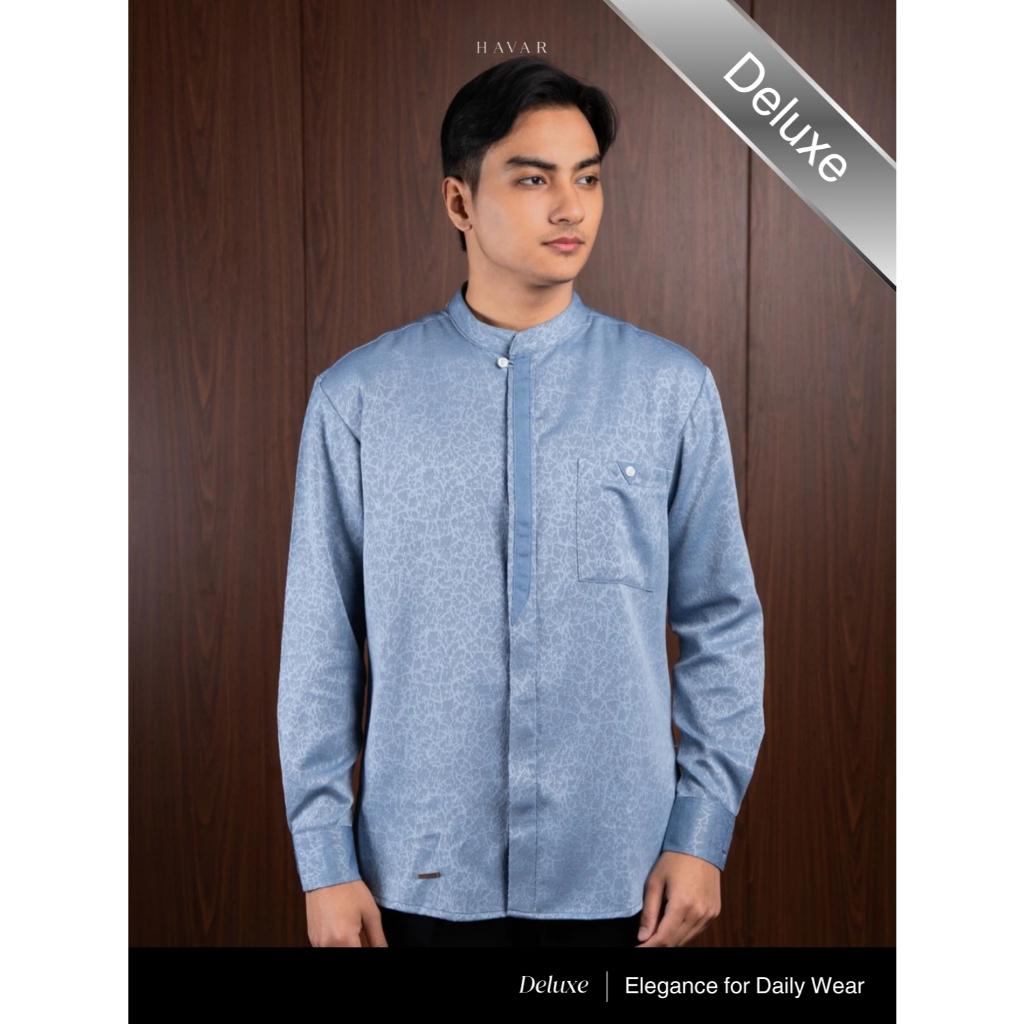 Havar Farid Blue Kemeja Koko Muslim Premium Slimfit Lengan Panjang