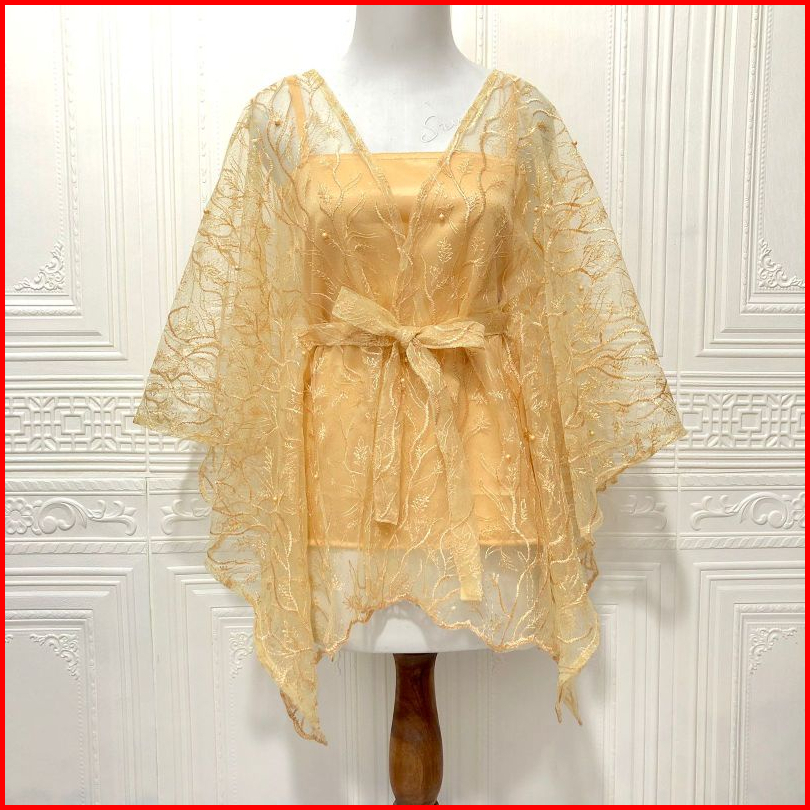 Outer Brukat Cape Brukat Tile Mutiara Kebaya Simple Cape Brukat One Shoulder Outer New Fashion Tile Kebaya Wisuda Lamara