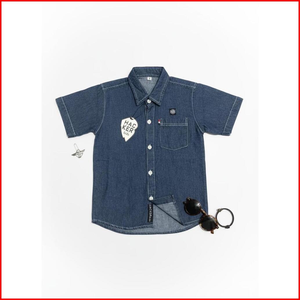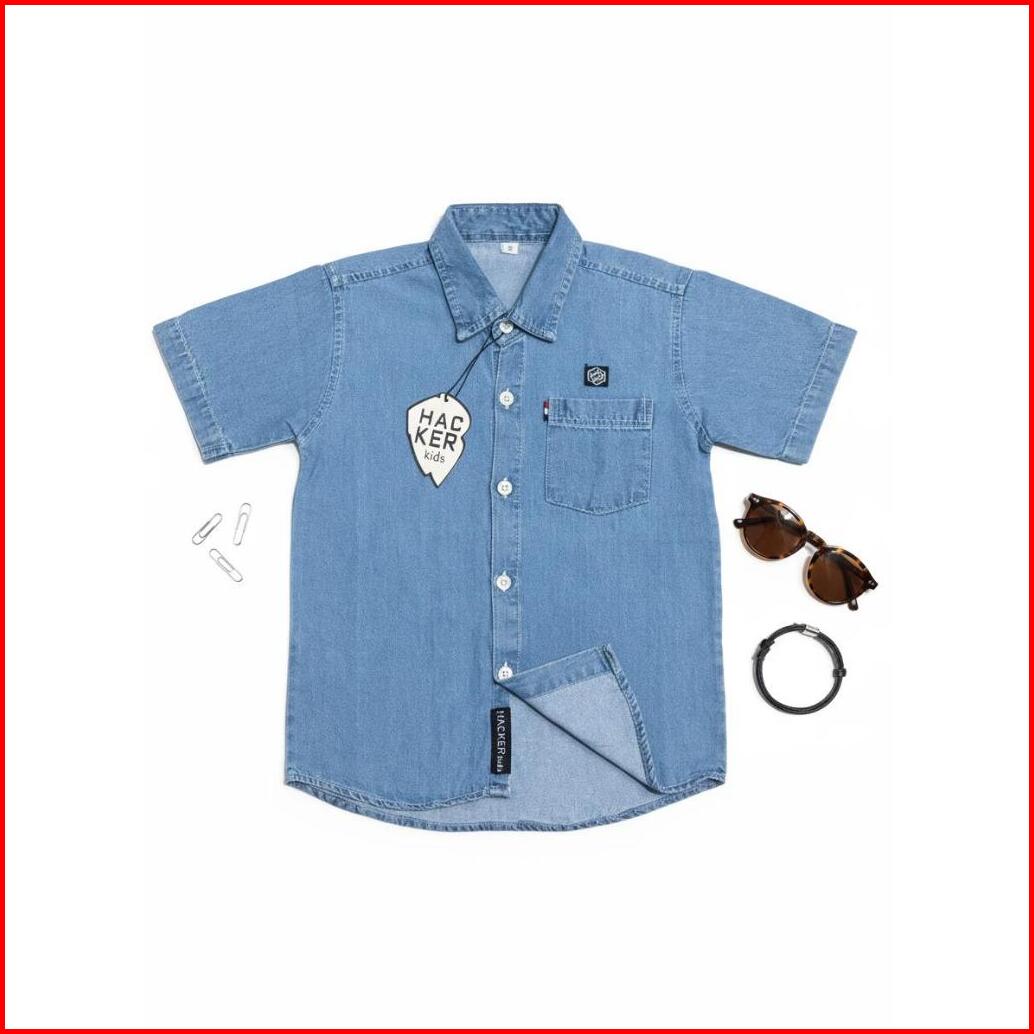 Kemeja Jeans Anak - Anak Lengan Pendek Denim Outfit Anak Anak Masa Kekinian Tampil Keren