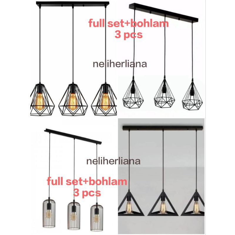 Lampu hias gantung 3 cabang full set+bohlam 3 pcs