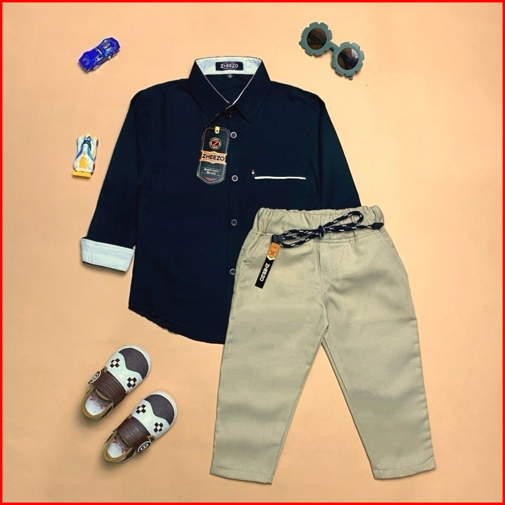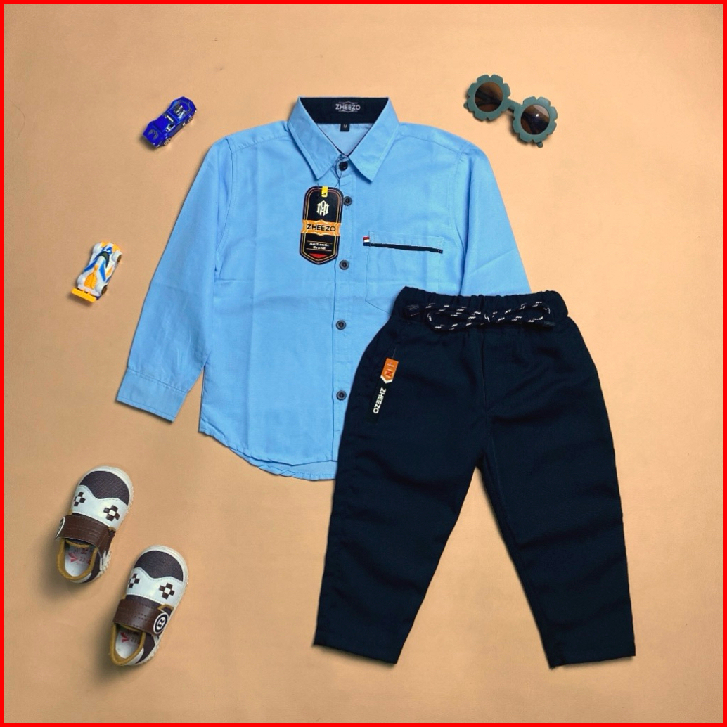 Zheezokids - Setelan Baju Dan Celana Anak Laki Laki Usia 1-12 Tahun Setelan Kemeja Panjang Anak Kekinian