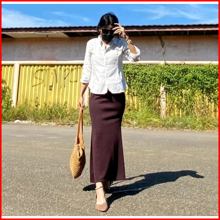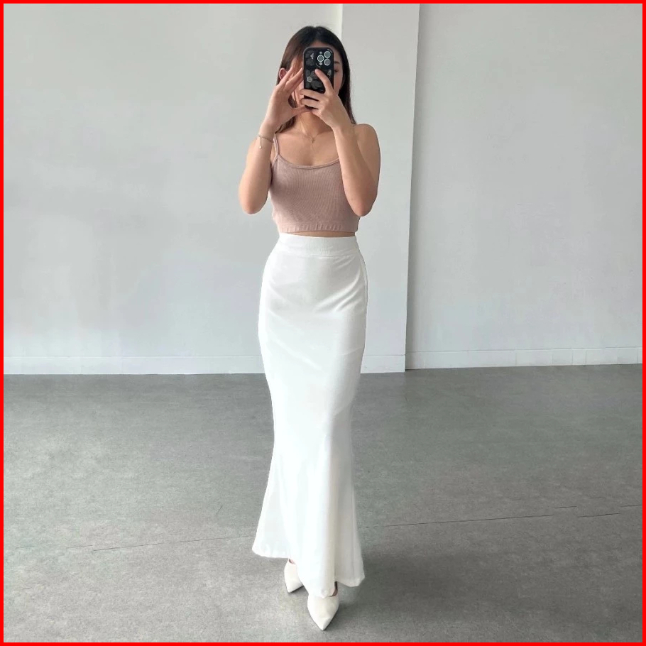 Lunar Mermaid Skirt - Scuba Premium Rok Flare Wanita Basic Polos - Maxi Midi Rok Panjang Wanita Adem Melar Elegan Kekini