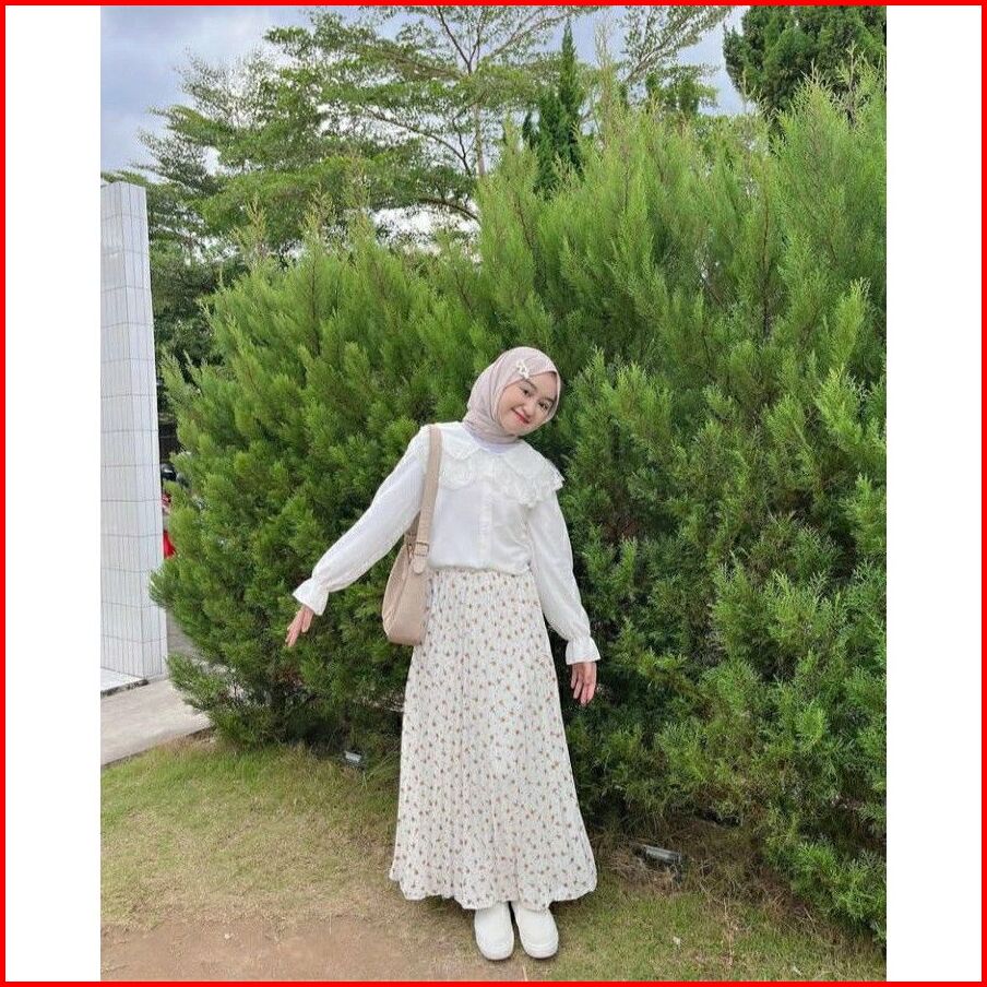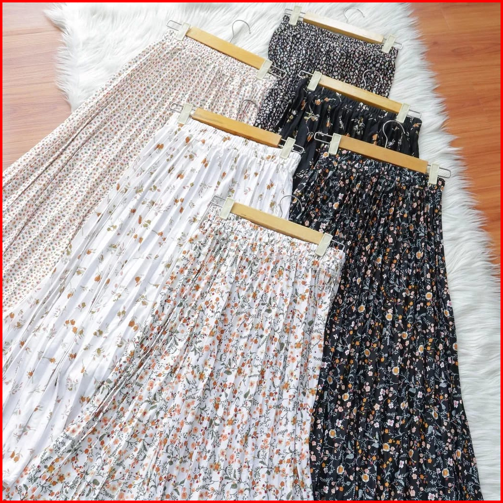 Rok Plisket Bahan Hyget Premium Daisy Fit To Allsize Motif Bunga Lily