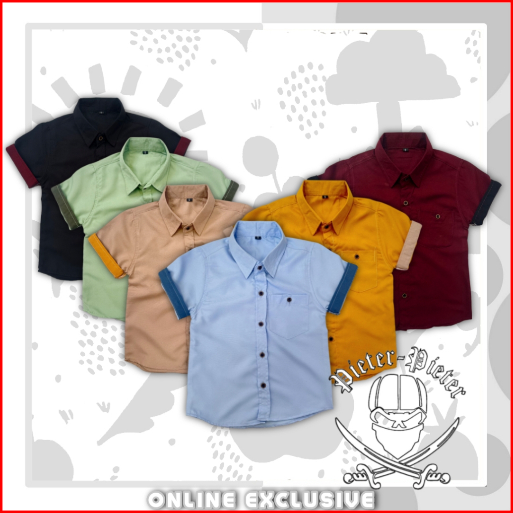 Kemeja Anak Regel Lengan Lipat Variasi Warna Terbaru Usia 1-10 Tahun