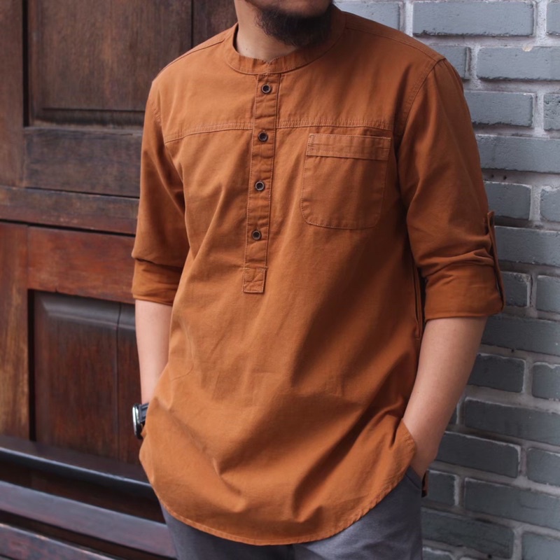 Hmd_Official Baju Koko Pria Dewasa Lengan Panjang Terbaru Bahan Katun Baby Canvas