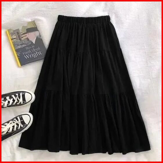 Rok Canda Susun Polos Rok Panjang Wanita Korean Style Rok Rempl Wanita Bahan Crinkle Premium