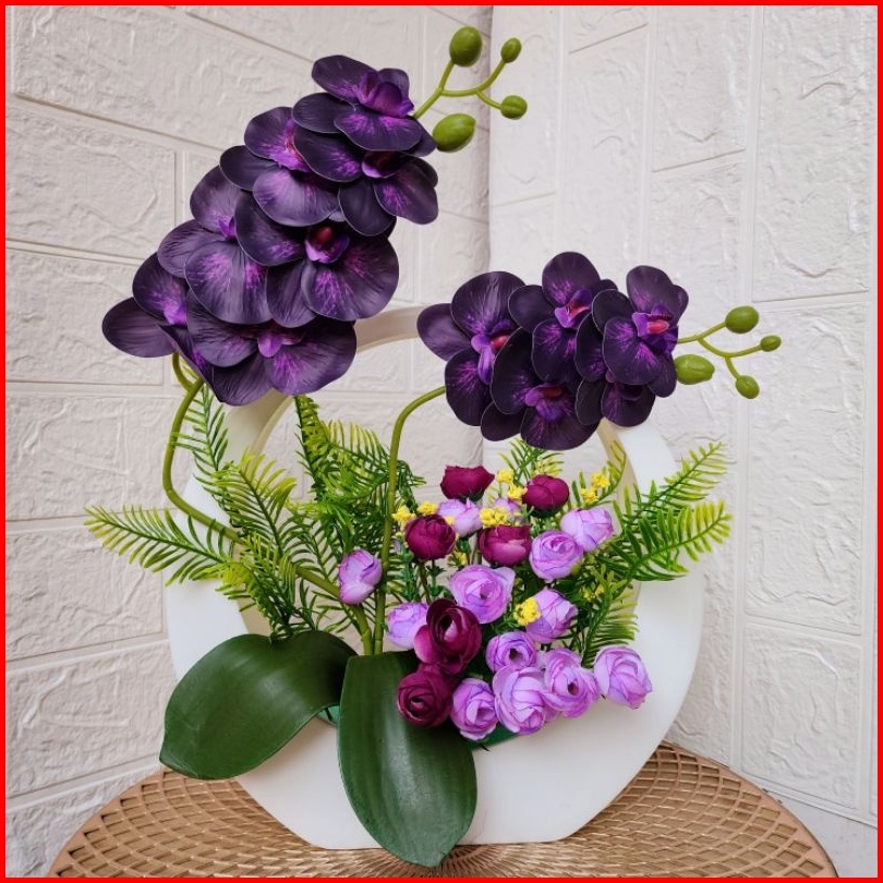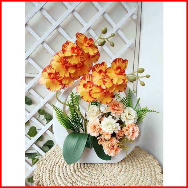 Bunga Anggrek Latex Combinasi Palem Dan Krisan Artificial Vas Bulat