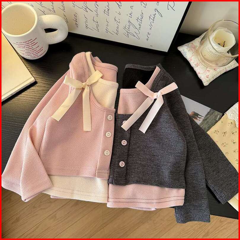 Princesscoco 1-11 Tahun Kemeja Dasar Pita Musim Semi Imitasi Dua Potong Untuk Anak Perempuan