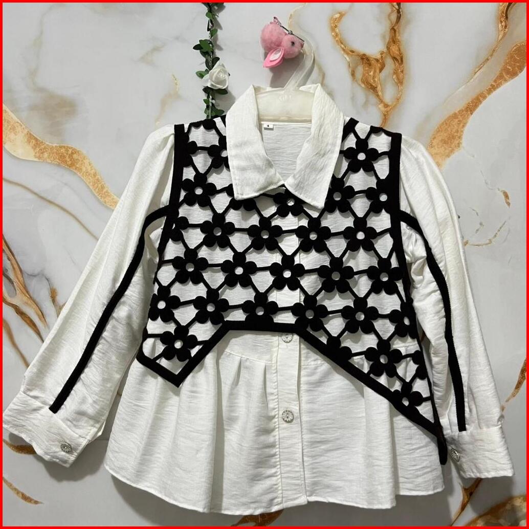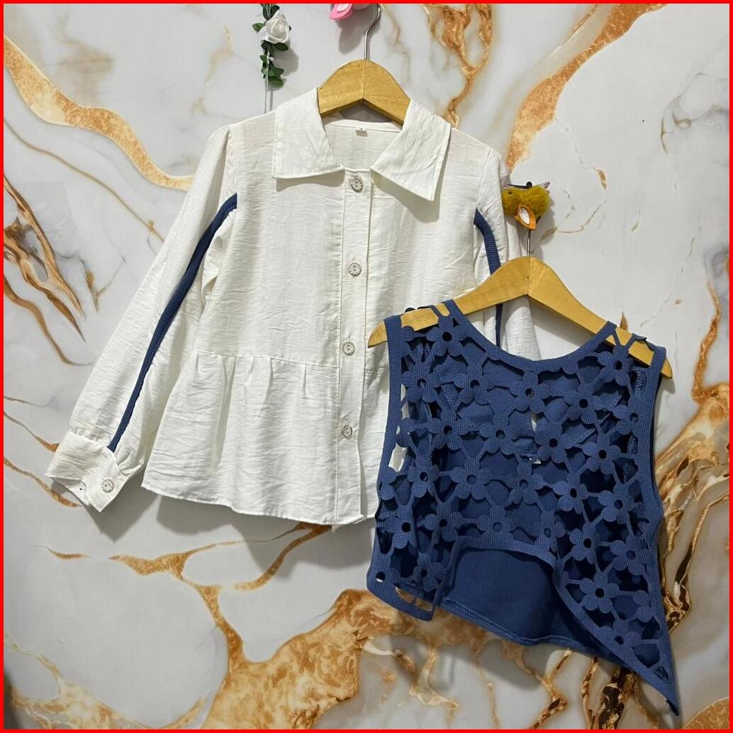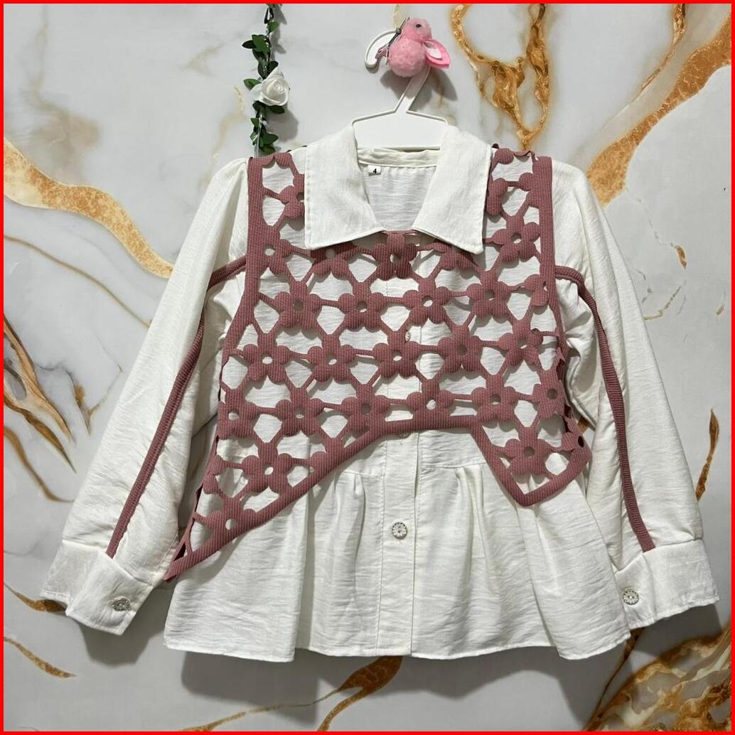 Cera Colletion-atasan Nindia Kemeja Dan Vest Only Atasan Viral Anak Perempuan Usia 3-12 Tahun