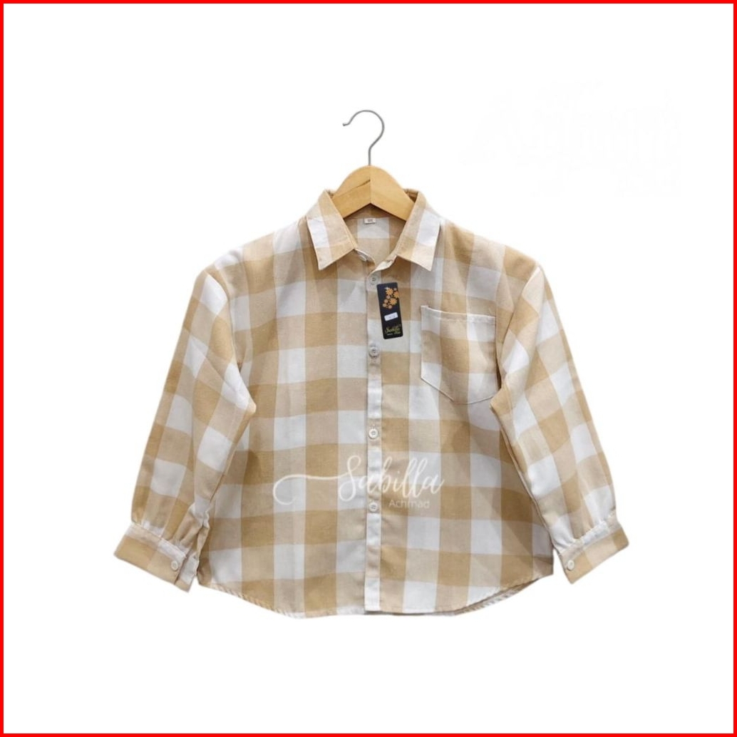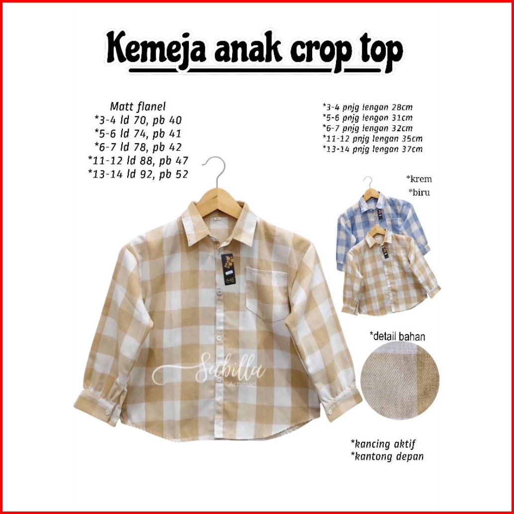 Kemaja Crop Top Anak Perempuan Bahan Flanel Usia 3-14 Tahun