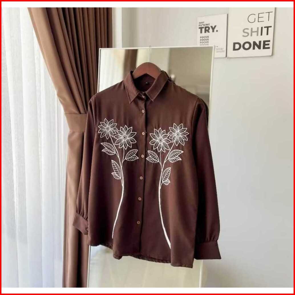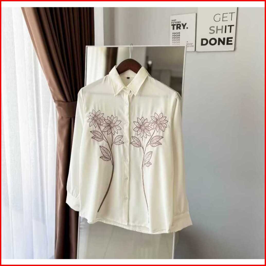 Kemeja Bordir Bunga Matahari Kemeja Wanita Kekinian Jumbo