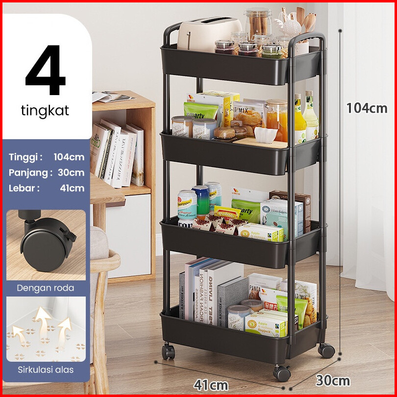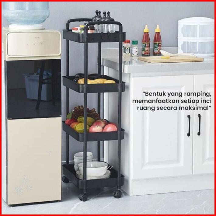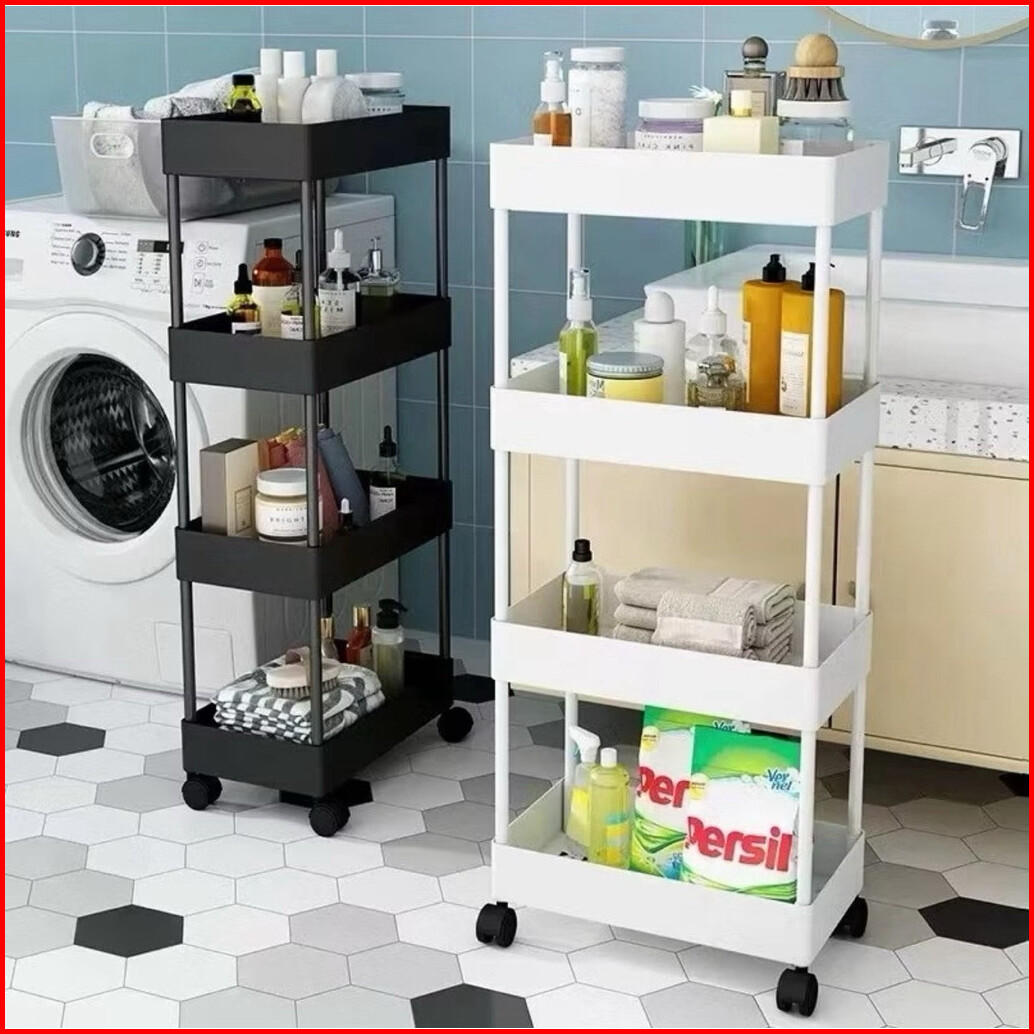 Rak Troli Plastik 4 Tingkat Rak Toilet Rak Kamar Mandi Rak Dapur Serbaguna Dengan Roda Rak Susun