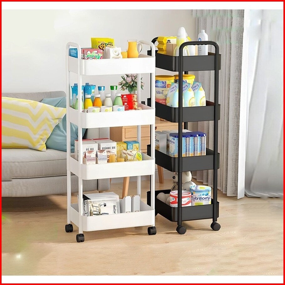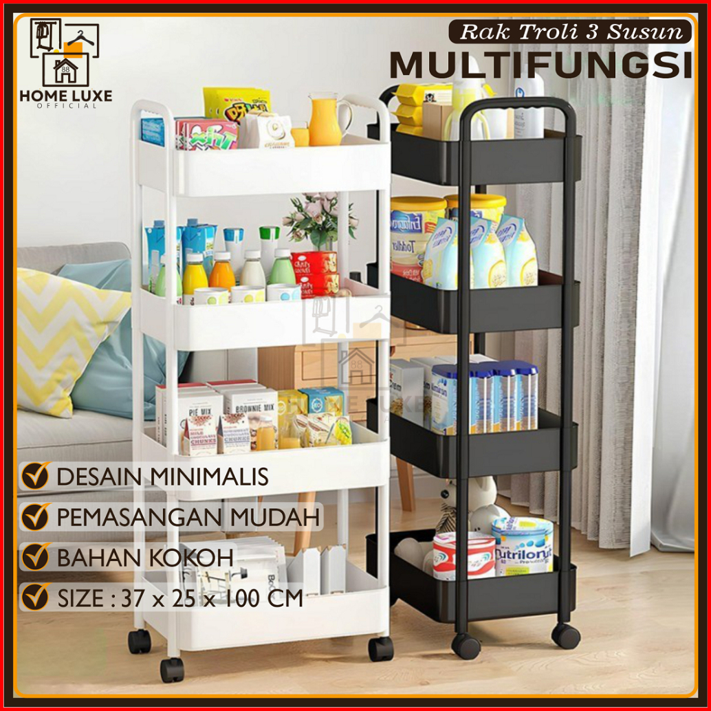 Homeluxe Rak Dapur Rak Toilet Rak Susun Serbaguna Rak Dorong Raktroli 4 Tingkat Dengan Roda