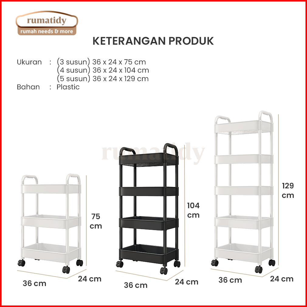 Rumatidy - Rak Troli Serbaguna Kamar Dapur Toilet Roda 5 Susun Rak Kosmetik Multifungsi Korean